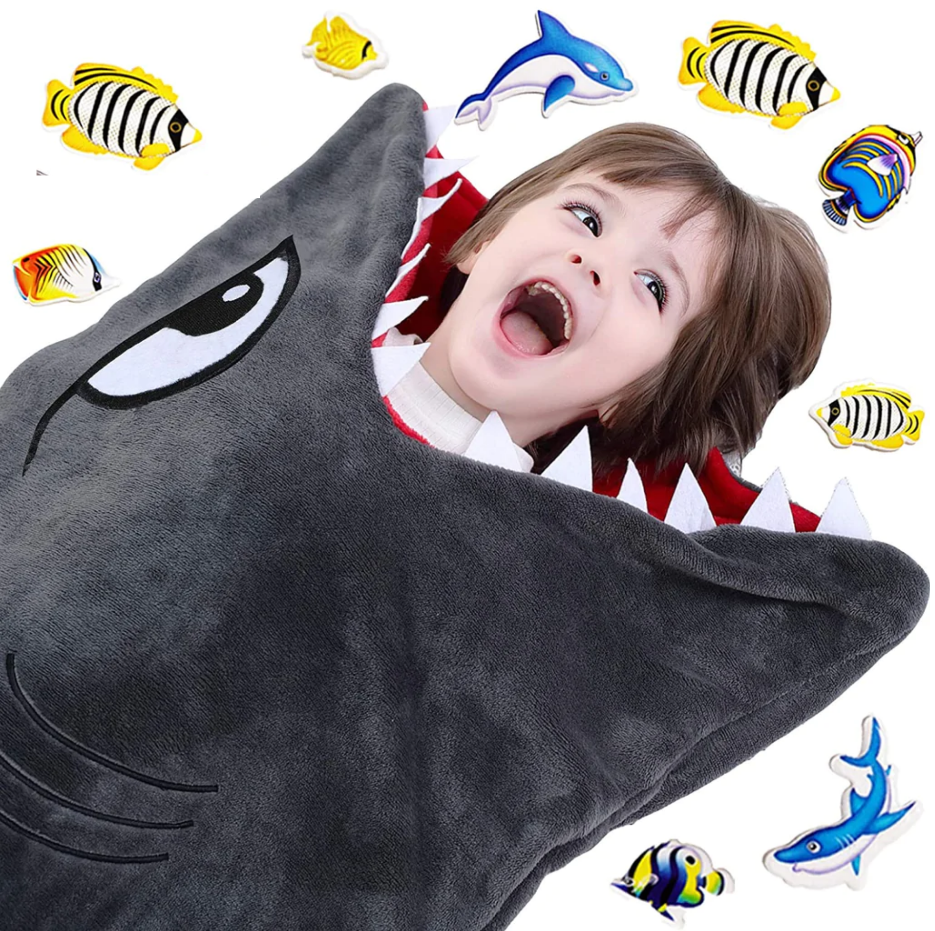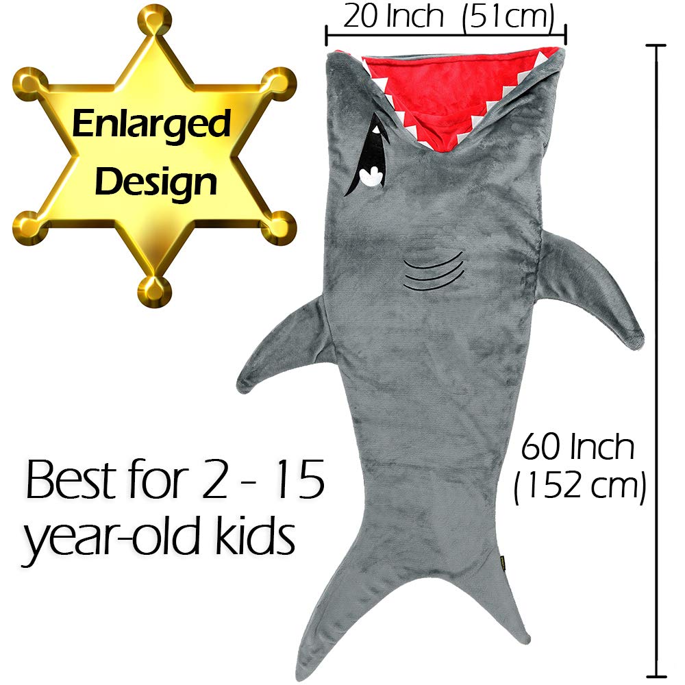 - 🐟【ADORABLE and ENLARGED DESIGN】60 x 20 inches. Fit kids age 3 to 15 year old, up to 5 feet height. Adults can also take turns. Excite toddlers to be wrapped and run around! It’s perfect for any camping, sleepovers, beach, road trips, movie time, and chilling throughout any season.