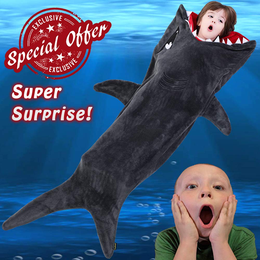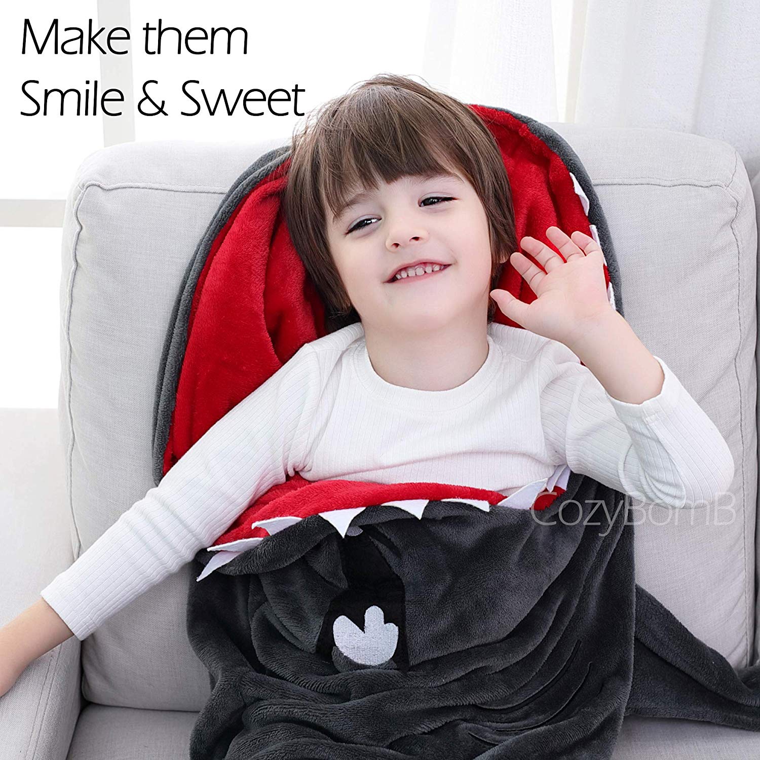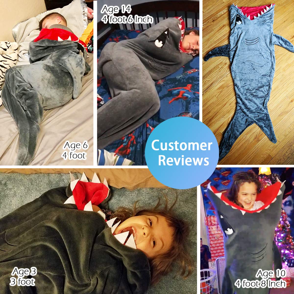 - 🐟【KIDS COMPANION and FUNKY SURPRISE】Snuggy Tails give children mental support and a sense of security. Surprised Kids will enjoy acting like being eaten by a funny jaws shark attack!Your kids will stay happy and comfortable as this blanket comes in lively colors and awesome soft jaw, fins and teeth