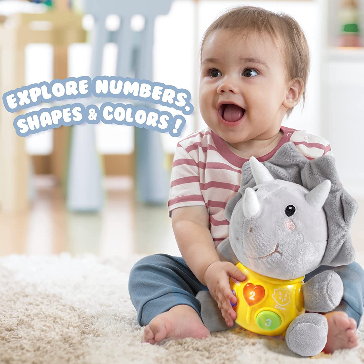 • BRINGS JOY & LAUGHTER - Dino the friendly baby dinosaur will take your infant on an exploration of color, shape, and music. Perfect as a newborn toys 0 3 months brain development. Watching your baby learn their first phrases, listen and dance with it can bring lots of laughter !