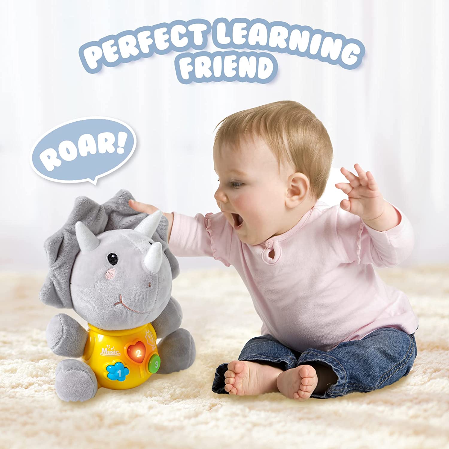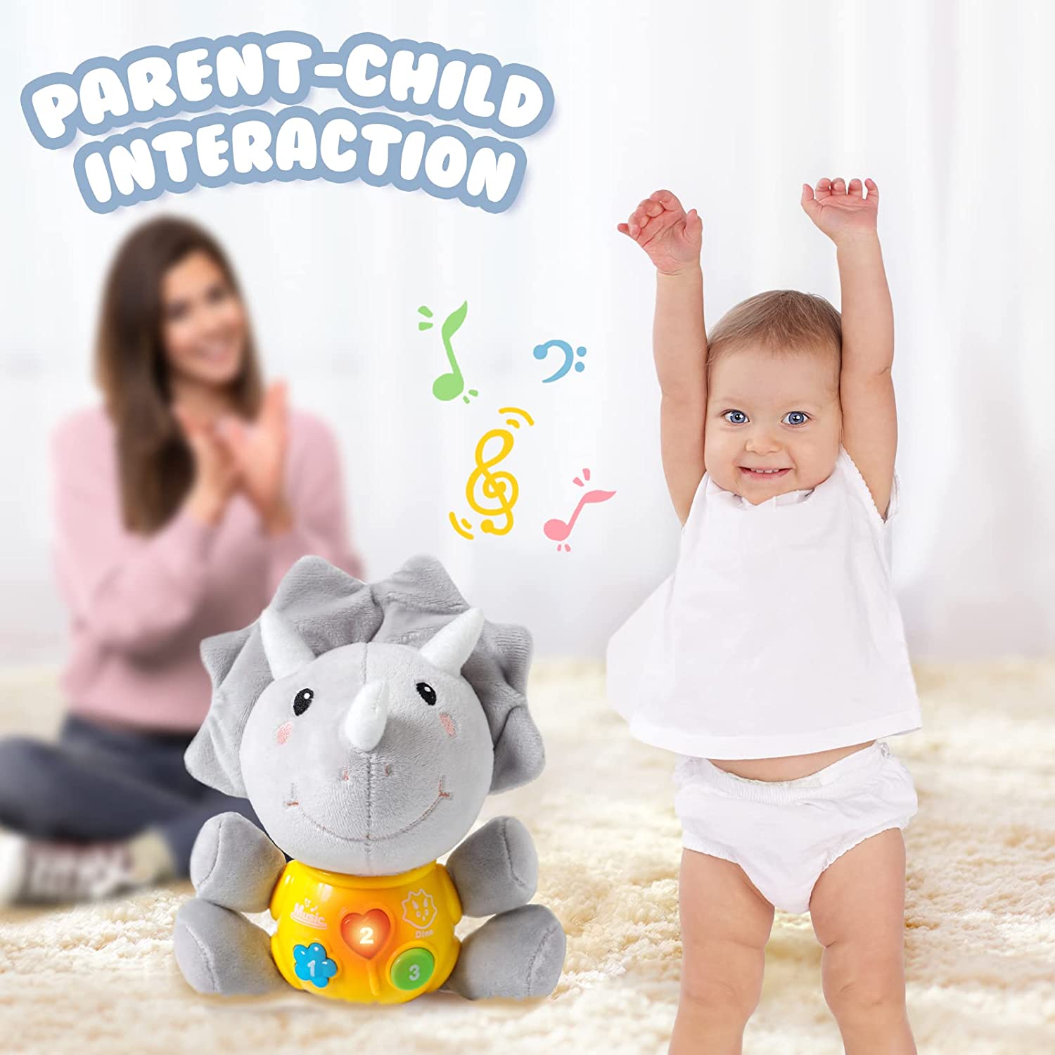 • HEAR IT SINGS - Learning will be joyful and exciting when Dino comes to life at the push of a button! It can play 12 classic songs along with sound of Nature, funny sound, and more. Ideal Baby Sensory Toys 0-6 6 To 12 Months Baby Music Boy Gifts!