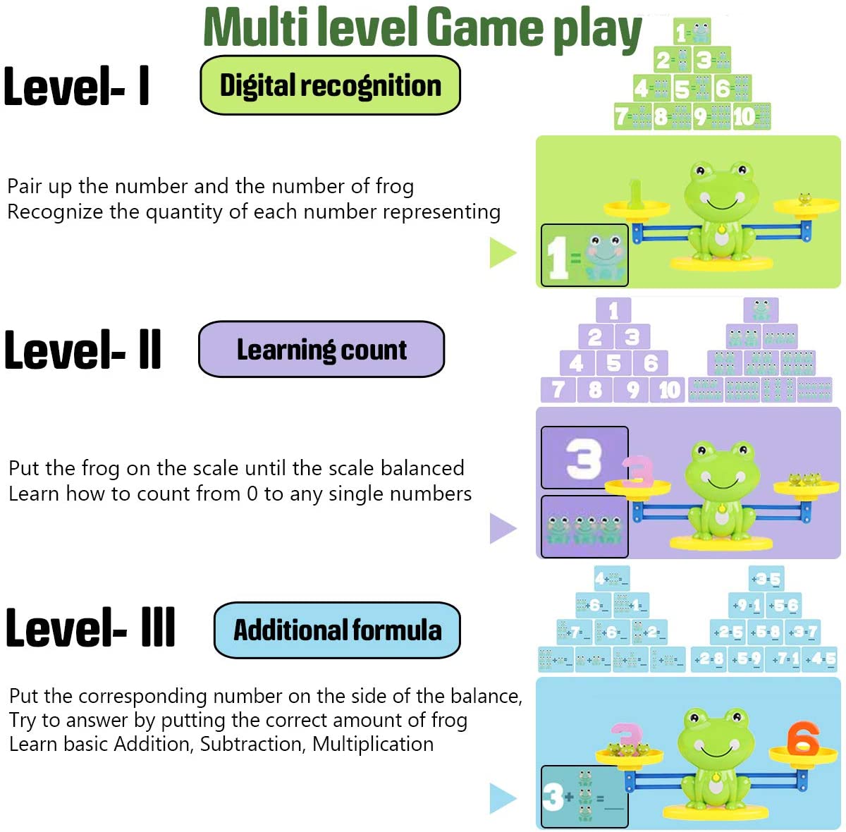 - 🐸【3 LEVEL OF DIFFICULTIES】The educational counting toys with cute frog scale and weight can help build children's interest in study through game. Your kid's number games can be more fun and exciting with our 3 level of difficulties.