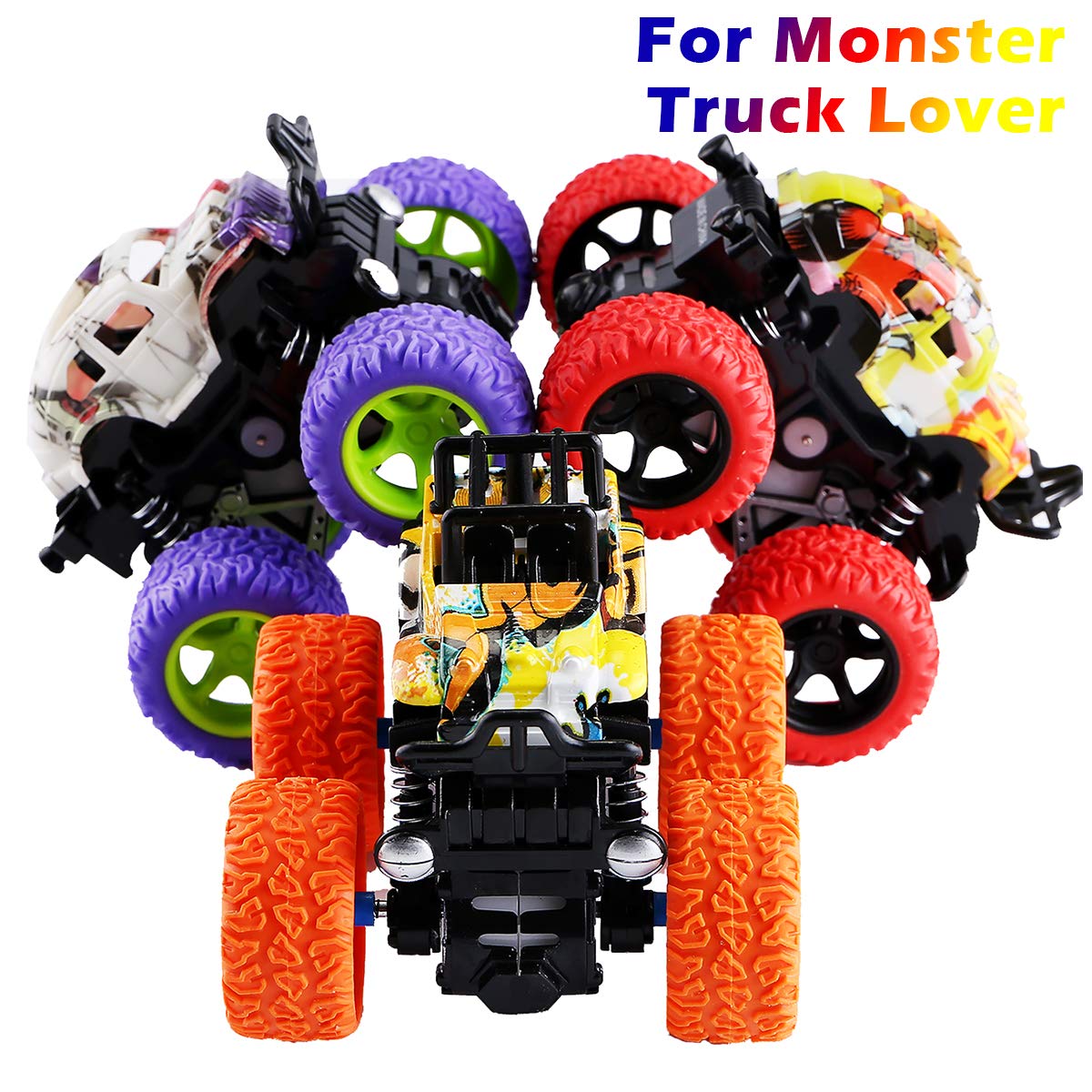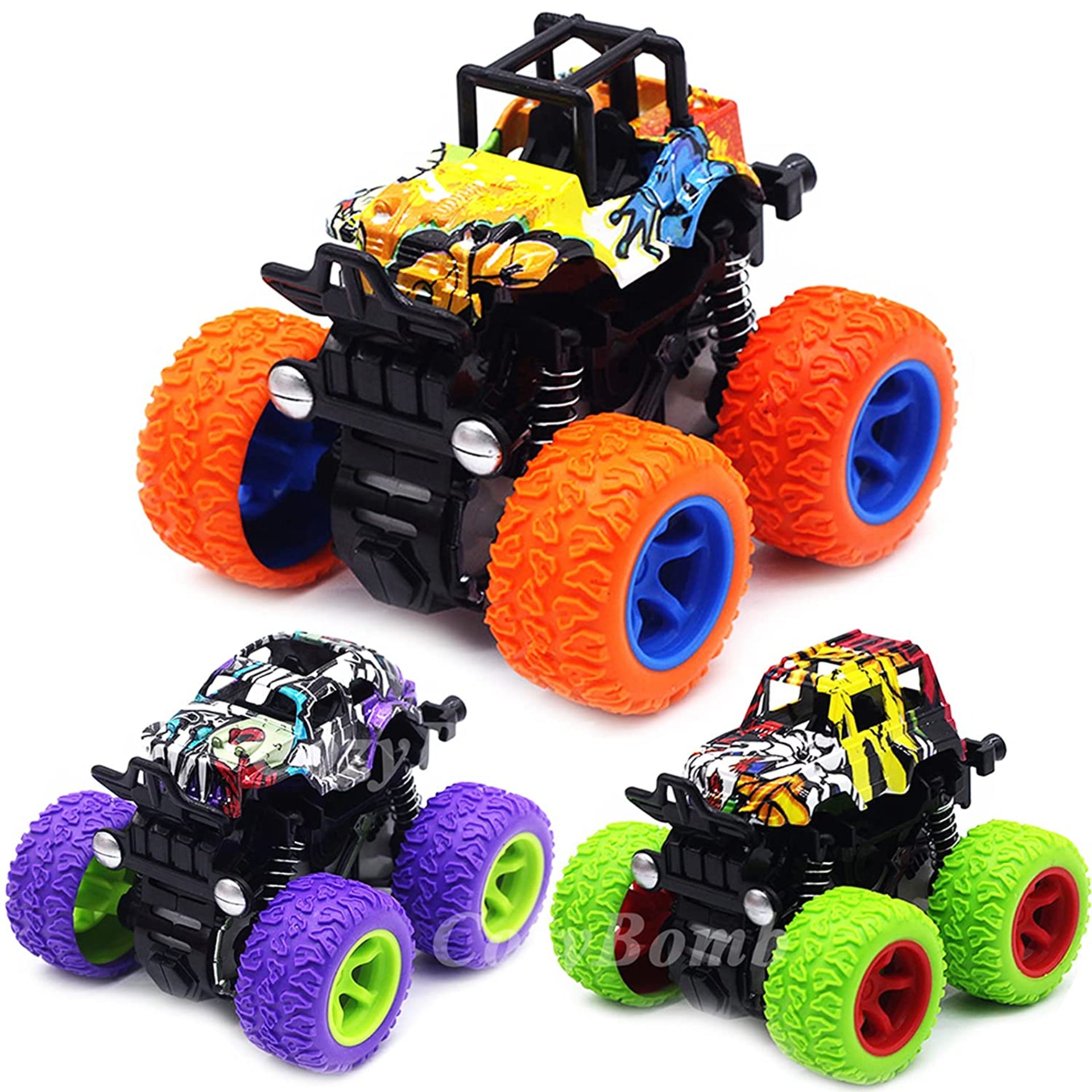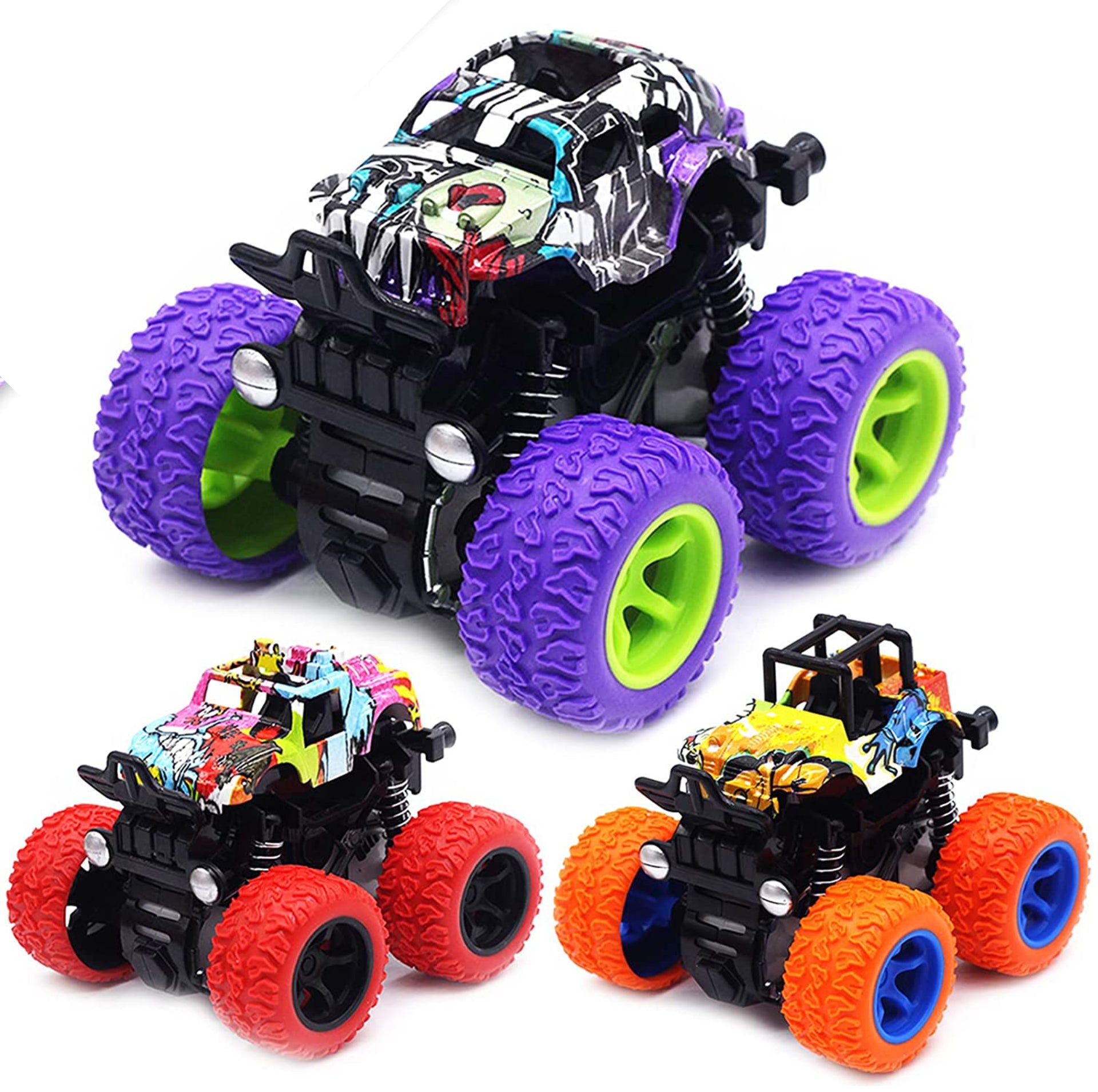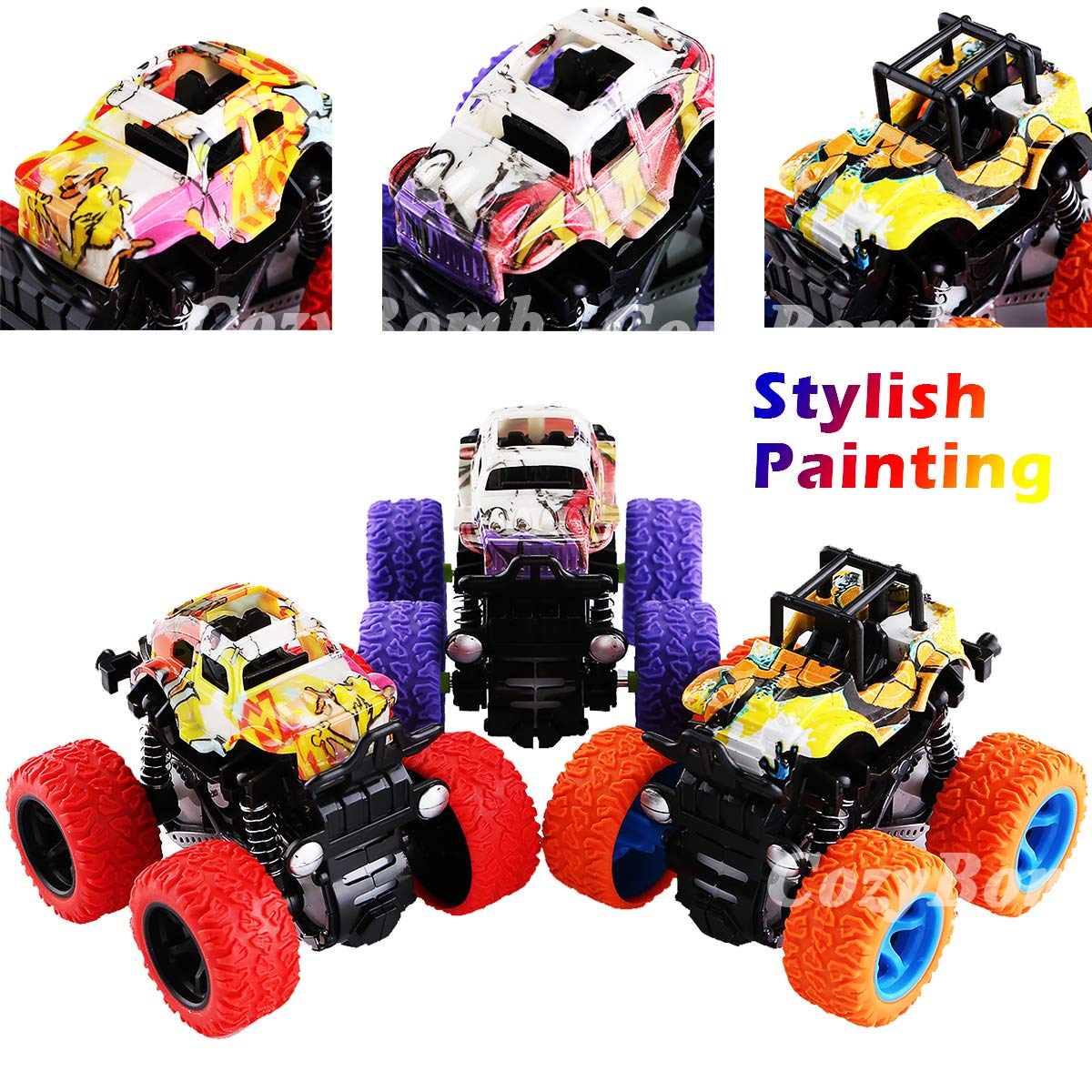 - 🚗 【COLORFUL GRAFFITI PAINTING】Stimulate toddlers' colour recognition and imagination with this eye-catching 3-pack mini monster truck combo that comes in a different vibrant color that will surely liven up any kid’s room or toy box! An exquisite gift for Christmas, birthday summer party supplies and decorations. It’s an amazing push and go car for kids so they’ll enjoy and have fun to drive as they want.